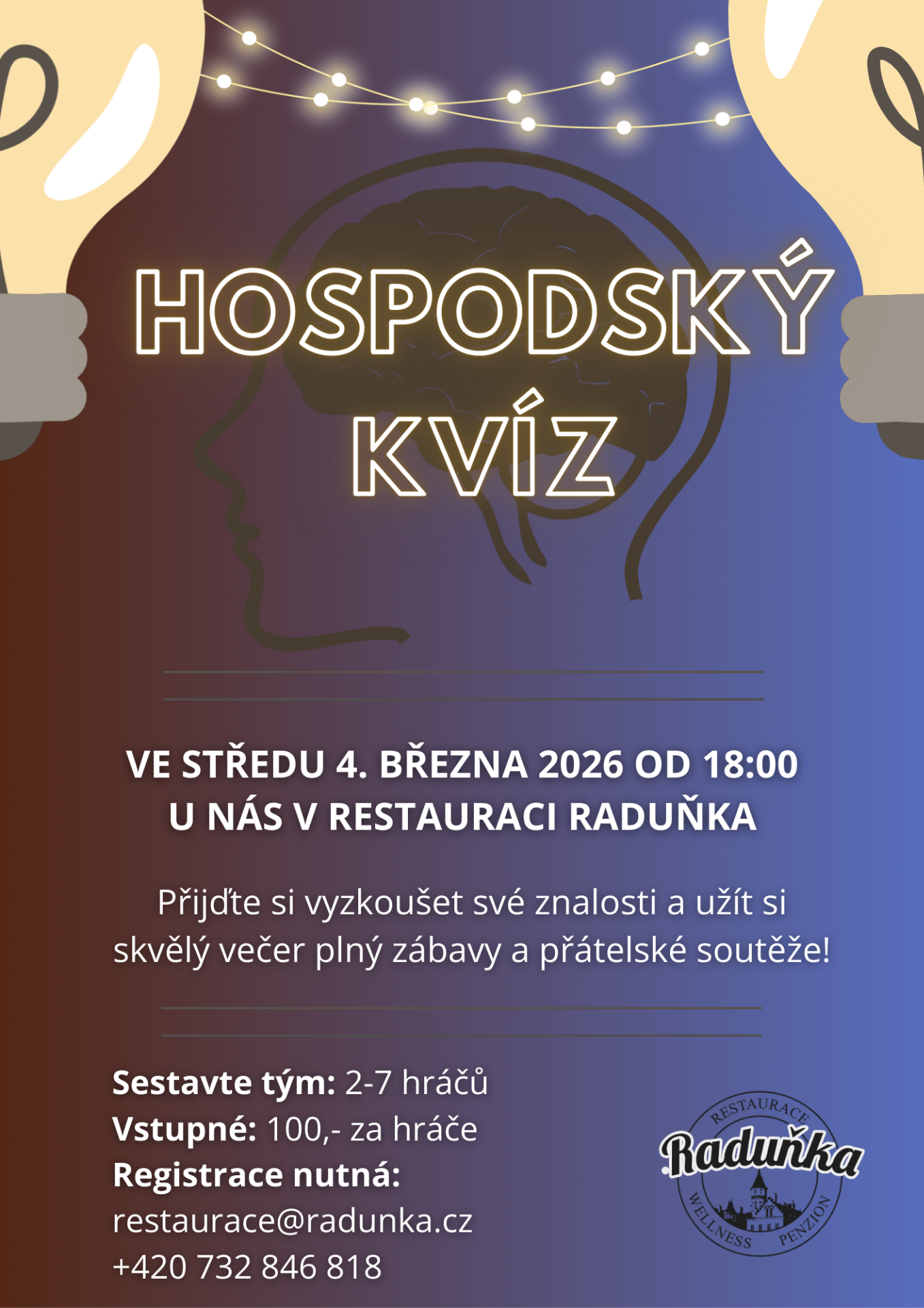 🧠 Hospodský kvíz - přijďte si zasoutěžit do Raduňky!